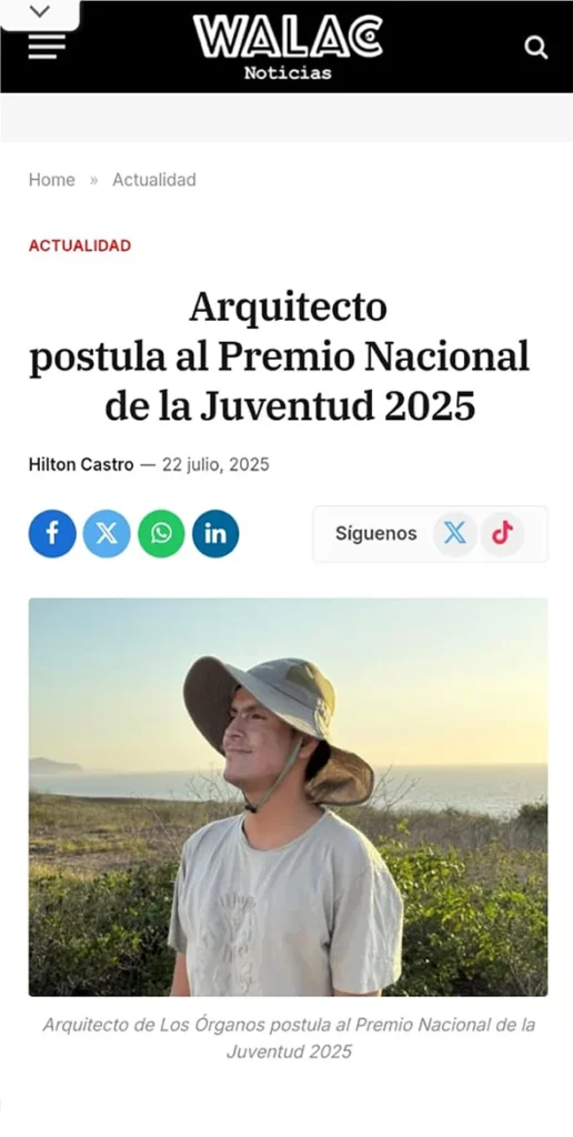 Una vivienda concebida para integrarse con la naturaleza, empleando muros de adobe, techos de madera y tejas planas, en armonía con el paisaje costero del norte del Perú.
